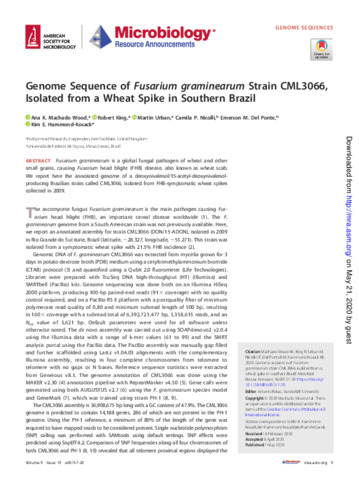 | Keywords | Fusarium Head Blight (FHB), Fusarium graminearum, Full genome sequence, Brazilian isolate |