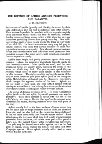 The defence of aphids against predators and parasites.