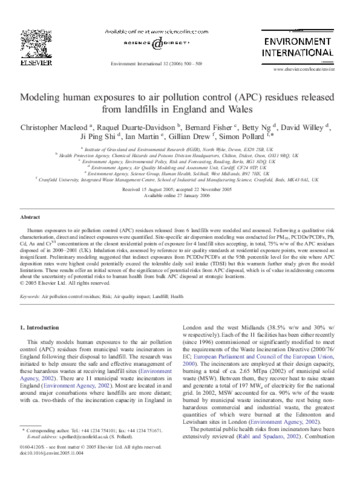 Modeling human exposures to air pollution control (APC) residues released from landfills in England and Wales.