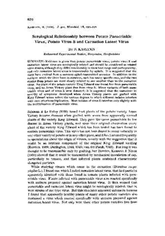 Serological Relationship between Potato Paracrinkle Virus, Potato Virus S and Carnation Latent Virus.