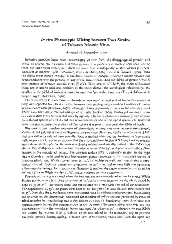 In vivo phenotypic mixing between two strains of tobacco mosaic virus