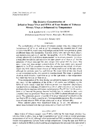 The relative concentration of infective intact virus and RNA of four strains of tobacco mosaic virus as influenced by temperature