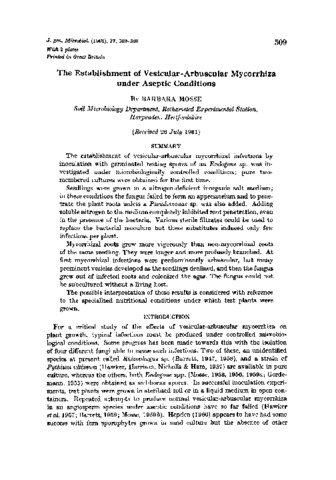 The establishment of vesicular-arbuscular mycorrhiza under aseptic conditions.