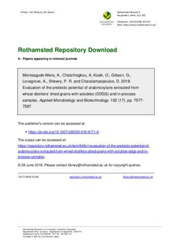 Evaluation of the prebiotic potential of arabinoxylans extracted from wheat distillers’ dried grains with solubles (DDGS) and in-process samples
