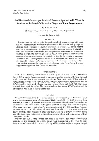 An electron microscope study of tomato spotted wilt virus in sections of infected cells and in negative stain preparations.