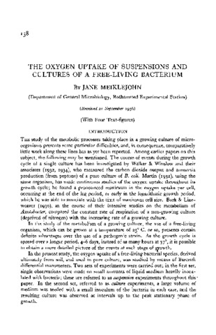The oxygen uptake of suspensions and cultures of a free-living bacterium.