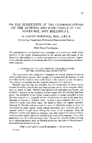 On the Sensitivity of the Chemoreceptors on the Antenna and Fore-tarsus of the Honey-Bee, Apis mellifica L.