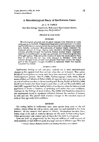 A microbiological study of earthworm casts