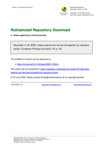 Insect swarms can be bound together by repulsive forces