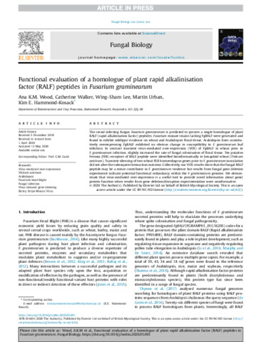 Functional evaluation of a homologue of plant rapid alkalinisation factor (RALF) peptides in Fusarium graminearum