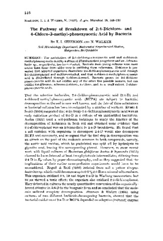 The pathway of breakdown of 2: 4-dichloro-and 4-chloro-2-methyl-phenoxyacetic acid by bacteria.