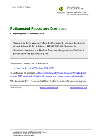 Editorial: RAMIRAN 2017: Sustainable Utilisation of Manures and Residue Resources in Agriculture