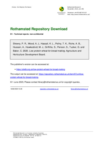 | Project | Developing novel types of low protein wheat for breadmaking, Designing Future Wheat (DFW) [ISPG], RD-2170005, B/N000854/1 |
