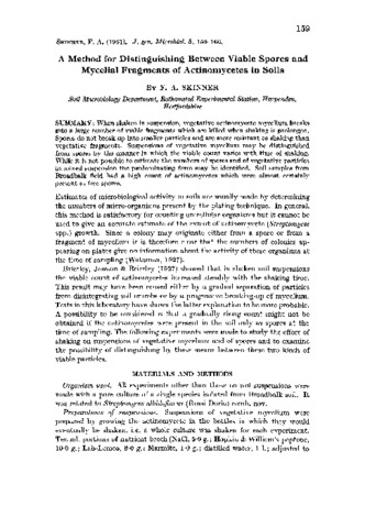 A Method for Distinguishing Between Viable Spores and Mycelial Fragments of Actinomycetes in Soils.