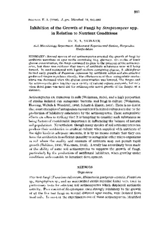 Inhibition of the growth of fungi by Streptomyces spp. in relation to nutrient conditions.