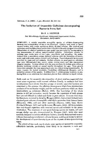 The isolation of anaerobic cellulose-decomposing bacteria from soil.