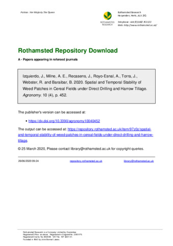 Spatial and Temporal Stability of Weed Patches in Cereal Fields under Direct Drilling and Harrow Tillage