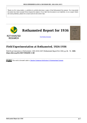 Field experimentation at Rothamsted in the years 1926-1936.