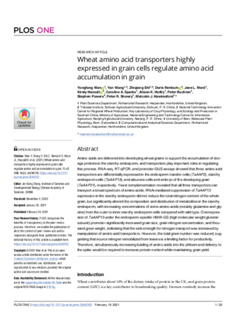 | Keywords | Amino acid transporter, Wheat grain, Overexpression, RNAi, Grain nitrogen, Grain metabolites, Grain size |