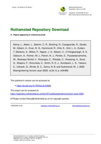 Bioengineering horizon scan 2020.