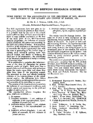 Third report on the experiments on the influence of soil, season, and manuring on the quality and growth of barley 1924