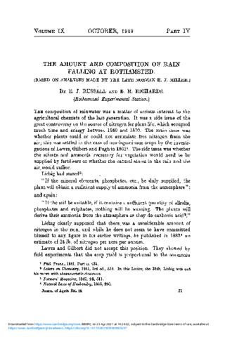 The amount and composition of rain falling at Rothamsted