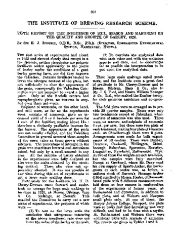 Fifth report on the influence of soil, season, and manuring on the quality and growth of barley, 1926.