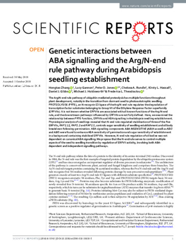 Genetic interactions between ABA signalling and the Arg/N-end rule pathway during Arabidopsis seedling establishment