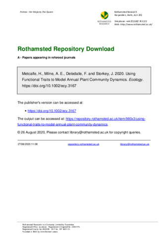| Keywords | Arable weeds, Annual plants, Community dynamics, Ecological function, Environmental filtering, Functional diversity, Functional traits, Population dynamics modelling |