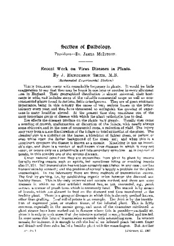 Recent Work on Virus Diseases in Plants.