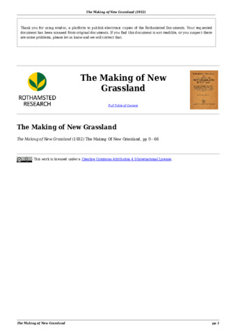 The making of new grassland experiences of practical farmers Rothamsted Conference RC No 11