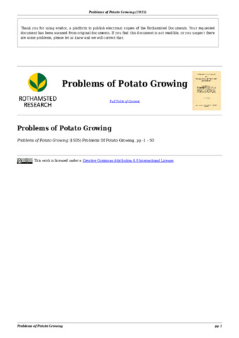 Problems of Potato Growing Rothamsted Conference RC No 16