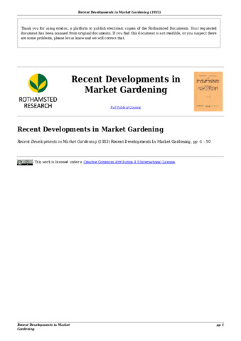 Recent Developments in Market Gardening Rothamsted Conference RC No 15.