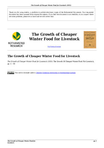 The Growth of Cheaper Winter Food for Livestock Rothamsted Conference RC No 10