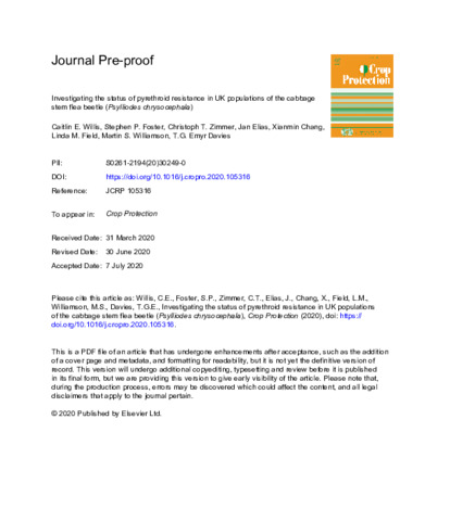 | Keywords | Cabbage stem flea beetle, Oilseed rape, Pyrethroid resistance |