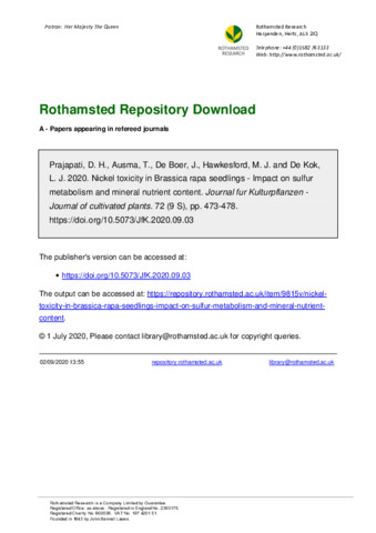Nickel toxicity in Brassica rapa seedlings - Impact on sulfur metabolism and mineral nutrient content