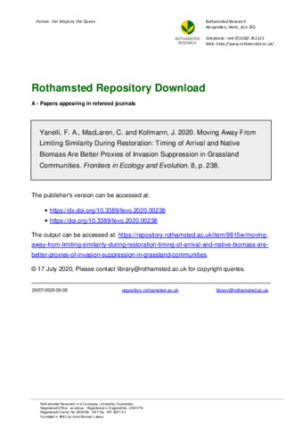 | Keywords | Biotic resistance, Limiting similarity, Priority effects, Restoration ecology, Revegetation |