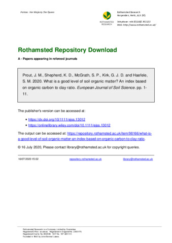 What is a good level of soil organic matter? An index based on organic carbon to clay ratio