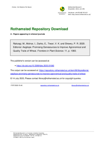Rakzegi, M., Molnar, I., Darko, E., Tiwari, V. K. and Shewry, Peter