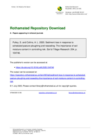 Sediment loss in response to scheduled pasture ploughing and reseeding: The importance of soil moisture content in controlling risk