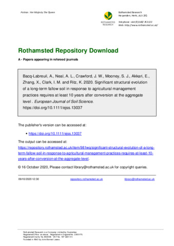 Significant structural evolution of a long-term fallow soil in response to agricultural management practices requires at least 10 years after conversion