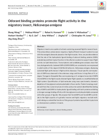 Odorant binding proteins promote flight activity in the migratory insect, Helicoverpa armigera