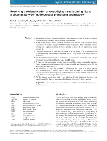 | Keywords | Insect classification, Random forest classifier, Wingbeat harmonics, Aphid, Beetle |
