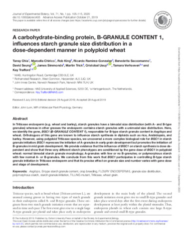 A carbohydrate-binding protein, B-GRANULE CONTENT 1, influences starch granule size distribution in a dose-dependent manner in polyploid wheat