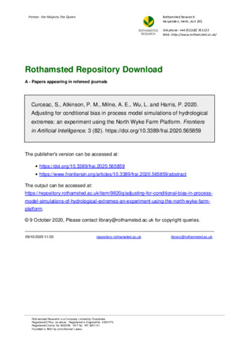 | Additional information | This should be funded from Stelian's PhD with Lancaster Environmental Centre and Rothamsted Title: Statistical analysis of extremes in the measured and simulated fine-resolution temporal data sets from the North Wyke Farm Platform Budget code: RP10376-01 Short title : Hybrid Modelling for Peak Waterflow |