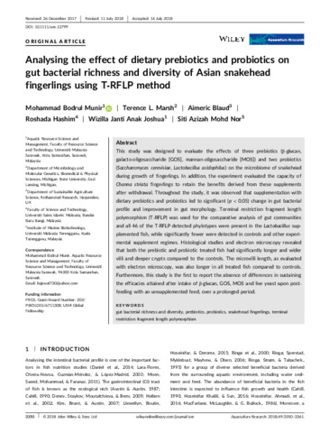 Analysing the effect of dietary prebiotics and probiotics on gut bacterial richness and diversity of Asian snakehead fingerlings using T‐RFLP method
