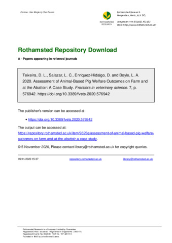| Keywords | Pig, Welfare, Lesion, Inspection, Ante-mortem (AM) |