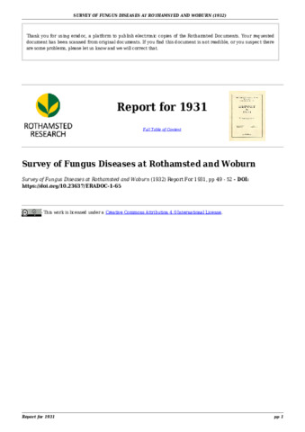 Survey of fungus diseases at Rothamsted and Woburn