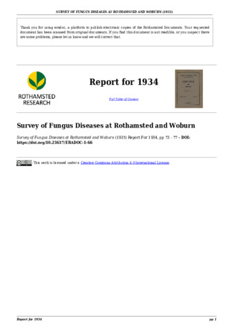 Fungus diseases at Rothamsted and Woburn 1933-1934 (Take-all , Gaeumannomyces graminis var. tritici.).