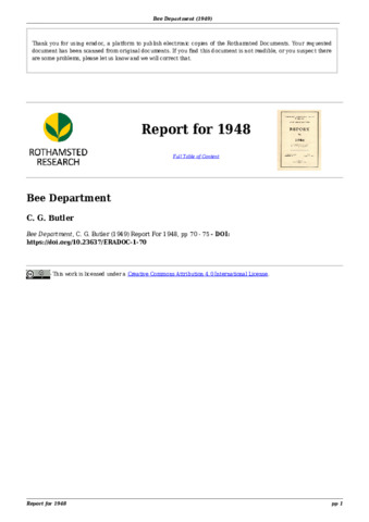 Report of the Bee Department 1948.